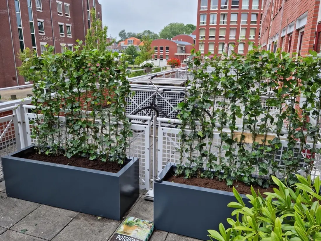 Met een hedera haag maak je heel eenvoudig een privé omgeving op jouw balkon. Het hederascherm is namelijk supersnel dichtgegroeid. Zo heb je binnen een aantal maanden tot een jaar een volledig beschutte afbakening.